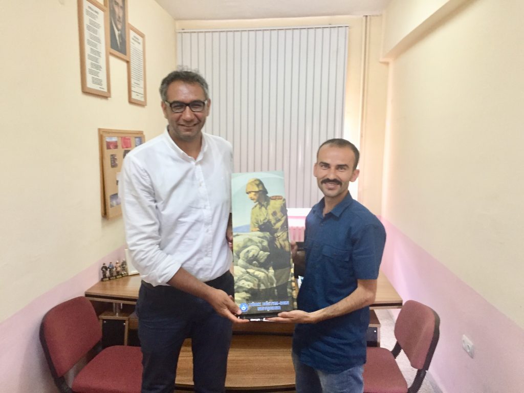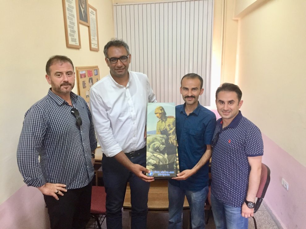 Şube Başkanı Tayfur URGENÇ Atila ÇATALTEPE’yi kurucu müdür olarak görevlendirilmesinden dolayı tebrik ederek “Atatürk’ün Çanakkale Savaşını yönettiği yer, Atatürk Conkbayırı’nda” adını verdikleri kanvas tablosunu hediye etti.