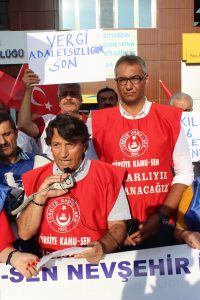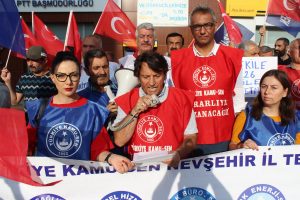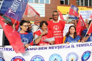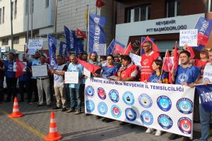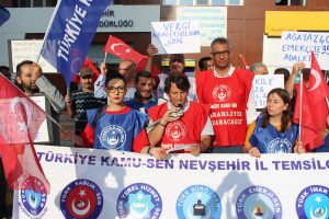 Türkiye Kamu Sen Nevşehir İl Temsilciliği Konfederasyonuna bağlı sendika üyelerinin katılımı ile Nevşehir Diriliş Meydanında çalışanların sorunlarını gündeme getiren basın açıklaması ile hükümet tarafından verilen %3.5’lu zamları, hükümeti ve yetkili sendikanın tutumunu eleştirdi.