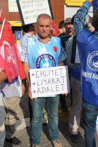 Eyleme Türkiye Kamu Sen flamaları ve Türk bayrakları ile katılan sendika üyeleri açtıkları dövizlerle de dikkat çekti. Türkiye Kamu Sen üyeleri “Ağam bizimle eyleniyor, Rantiyeye değil memura bütçe, Vergi adaletsizliği son bulsun, Paralel sendika istemiyoruz, Vekile %26 asile %3.5 Adalet nerede? 3600 Ek gösterge ne oldu? Ehliyet Liyakat adalet, Ağaya %40 Emekçiye %3.5 adalet istiyoruz. Kamu Sen burada 3.5 sen nerede? Türkiye sevdamız ekmek için kavgamız, Adalet kalkınma dediniz hakkımızı yediniz, Yandaşa yoldaşa gelince var memura gelince zarar.” Pankartlarını açtılar. Eyleme Türkiye Kamu Sen İl Temsilcisi Turgay ÇETİN, Türk Eğitim Sen Şube Başkanı Tayfur URGENÇ, Türk Büro Sen İl Temsilcisi Mehmet BURUNKAYA, Türk Haber Sen İl Temsilcisi Ercüment TUNÇ, Türk İmar Sen İl Temsilcisi Recep KILIÇ, Türk Yerel Hizmet Sen İl Temsilcisi Metin TAŞÇI, Türk Büro Sen Aksaray Şube Başkan Yardımcısı Ömer KOÇ ve sendikalara bağlı yönetim kurulları ve üyelerin katılımı ile gerçekleşti. Atılan sloganlar eşliğinde Türkiye Kamu Sen Nevşehir il Temsilcisi Turgay Çetin bir basın açıklaması yaptı.