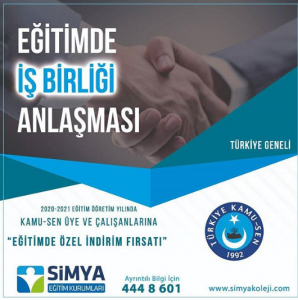 Türkiye Kamu Sen adına Türk Eğitim Sen Nevşehir şube başkanı Tayfur Urgenç ve Simya Koleji adına ise kurum müdürü Hakan Ekinci arasında yapılan görüşme neticesinde Simya koleji ile Türkiye Kamu Sen arasında yapılan ulusal anlaşmanın Nevşehir’de hayata geçirilmesine karar verildi. Konu ile ilgili açıklama yapan Tes. şube başkanı Tayfur Urgenç iş birliği protokolünün detaylarını paylaştı. Protokole göre; özel okul ve kurslardan Türkiye Kamu Sen’e bağlı sendikalara üye olan arkadaşlarımız ve birinci derece yakınları kurumun kendilerine tanıdığı resmi fiyatlar üzerinden %5 indirimli yararlanacaklardır. Özel indirimler sadece eğitim hizmetlerinde uygulanacaktır. 13 Temmuz tarihinden itibaren geçerli olan anlaşma 1 yıl süreyle uygulanacaktır. Dedi.