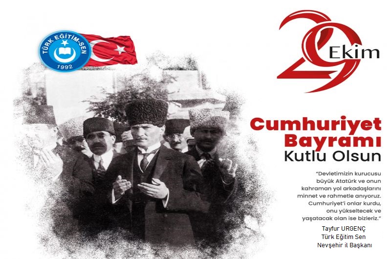 Türk Eğitim-Sen Nevşehir İl Başkanı Tayfur Urgenç’in 29 Ekim Cumhuriyet Bayramı dolayısıyla yaptığı basın açıklamasıdır.