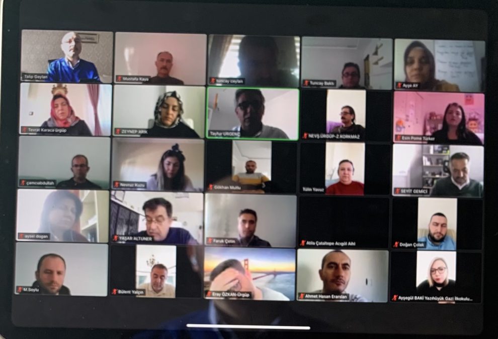 Türk Eğitim Sen Nevşehir şubesinin İl-İlçe-denetleme-disiplin-kadın komisyonu-üniversite yönetim kurullarından oluşan 2020-2021 1.yarıyıl değerlendirme 2. dönem planlama şeklinde yapılan uzaktan canlı istişare toplantısı Türk Eğitim Sen genel başkanı Talip Geylan’ın iştiraki ile gerçekleştirilmiştir.