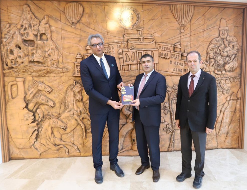 Türk Eğitim-Sen Nevşehir Şube Başkanı Tayfur Urgenç ve Başkan Yardımcısı Endüstri Mühendisi Abdullah Çamcı ile birlikte, Nevşehir Hacı Bektaş Veli Üniversitesi (NEVÜ) Rektörü Prof. Dr. Semih Aktekin’i makamında ziyaret etti.