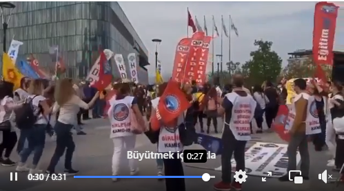 Türk Eğitim Sen Nevşehir şube başkanı Tayfur Urgenç sosyal medya hesapları üzerinden bir video yayınlayarak Eğitim İş bu ne İş diyerek videodaki HDP bayraklarını izah et gerisi hikaye dedi.