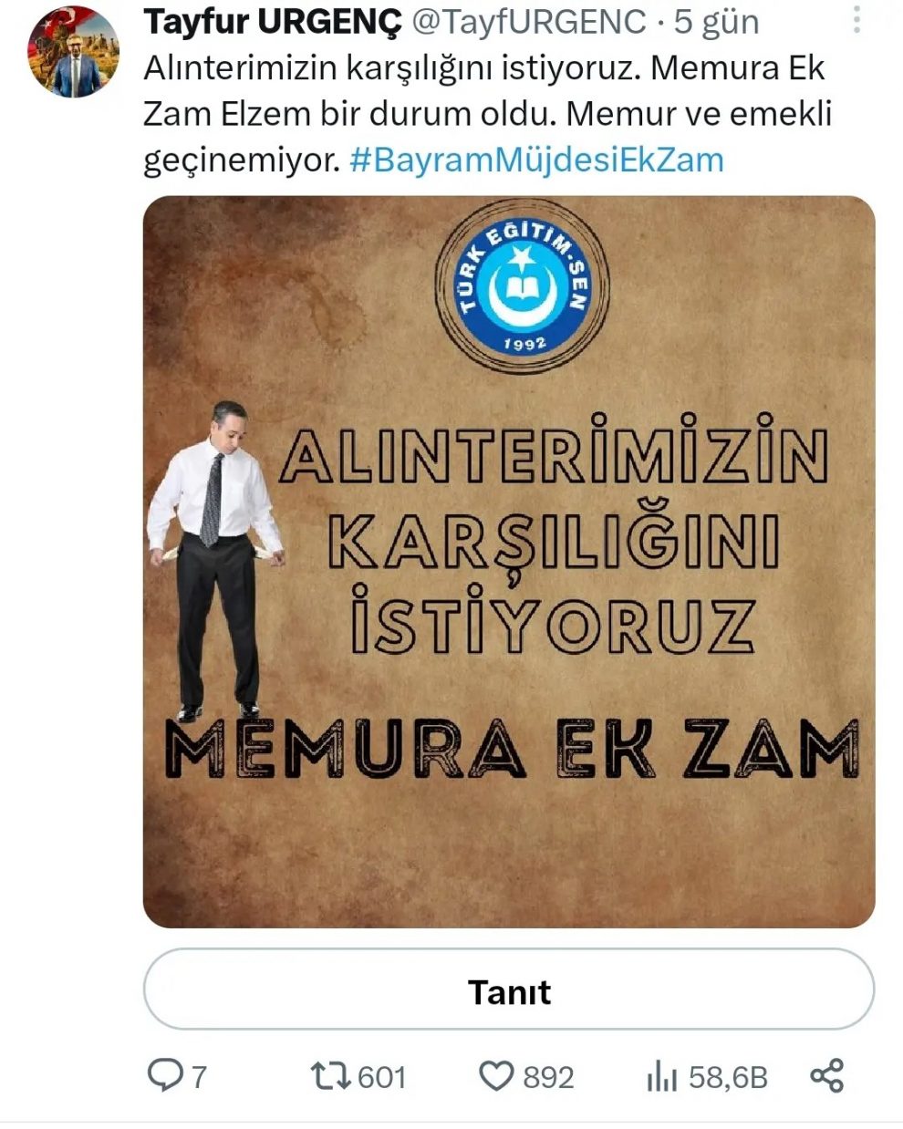 Hükümet, 1 Mayıs Emek ve Dayanışma Günü yaklaşırken, memurun bu son derece haklı talebine kayıtsız kalamaz!