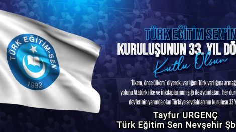 BİR SEVDA ÜLKÜSÜ TÜRK EĞİTİM SEN 33 YAŞINDA… Türk Eğitim Sen Nevşehir Şube Başkanı Tayfur Urgenç, Türk Eğitim-Sen’in 33. kuruluş yıldönümü...