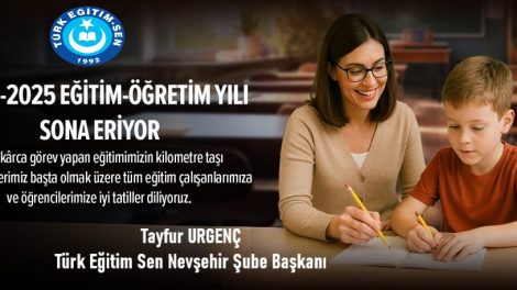 TES. NEVŞEHİR ŞUBE BAŞKANI TAYFUR URGENÇ; EĞİTİM MARATONU SONA ERİYOR. Türk Eğitim-Sen Nevşehir Şube Başkanı Tayfur Urgenç’in, 2024-2025 Eğitim...