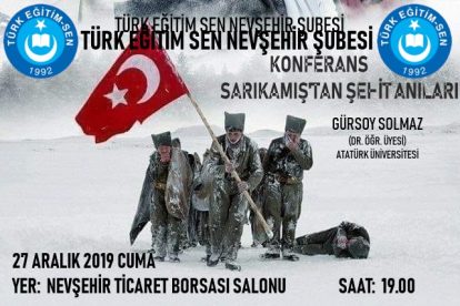 Türk Eğitim Sen Nevşehir şube başkanı Tayfur Urgenç Dr. Öğr. Üyesi Gürsoy Solmaz’ın konuşmacı olduğu “Sarıkamış’tan Şehit Anıları” adlı...