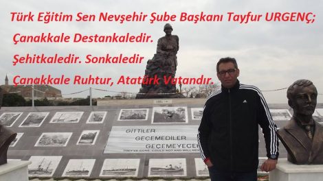 Türk Eğitim Sen Nevşehir Şube Başkanı Tayfur URGENÇ; Çanakkale Türk Milletinin uyanışıdır. Bir Liderin doğuşudur. Çanakkale ruhtur, Atatürk Vatandır. Diyerek Çanakkale...